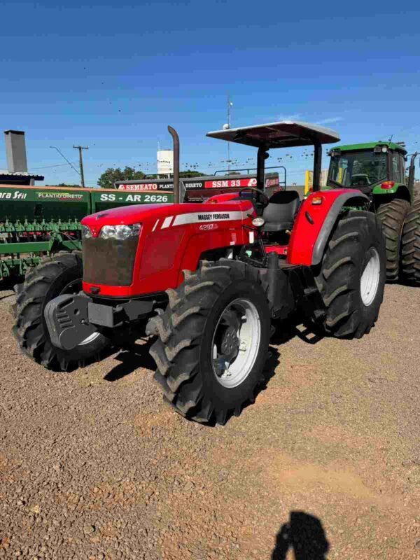 O Trator Massey Ferguson MF 4297 4×4 Ano 2017 é a escolha ideal para quem busca força, durabilidade e eficiência no campo. Reconhecido pela sua robustez, esse modelo oferece tração 4×4, garantindo melhor desempenho em terrenos irregulares e maior produtividade nas operações agrícolas. A direção hidráulica proporciona conforto e precisão, enquanto o comando duplo amplia a versatilidade no uso de implementos. Com 4.297 horas trabalhadas, trata-se de um equipamento bem conservado, pronto para atender às demandas do dia a dia no agronegócio. Sem cabine, facilita a manutenção e reduz custos operacionais, sendo uma excelente oportunidade para quem procura confiabilidade, desempenho e ótimo custo-benefício em um trator agrícola Massey Ferguson.